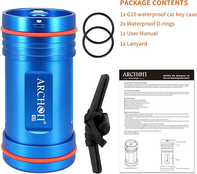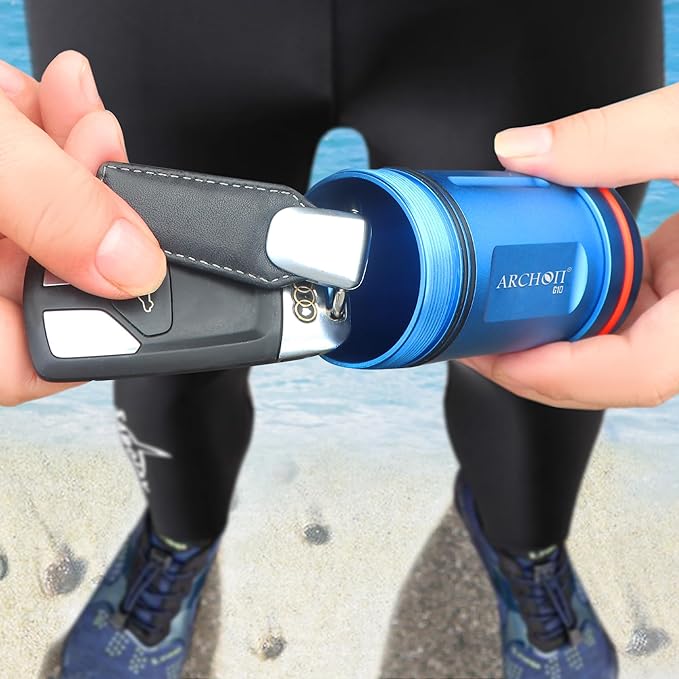 • 😜 Double-layer O-ring Design: Featuring a double-layer O-ring design, this waterproof key holder ensures effective waterproofing up to a depth of 150 meters. Tailored for professional divers, it serves as a secure storage solution for car keys and other small accessories requiring waterproof protection. The excellent waterproof performance also makes it suitable for water activities like canyoning and kayaking.
