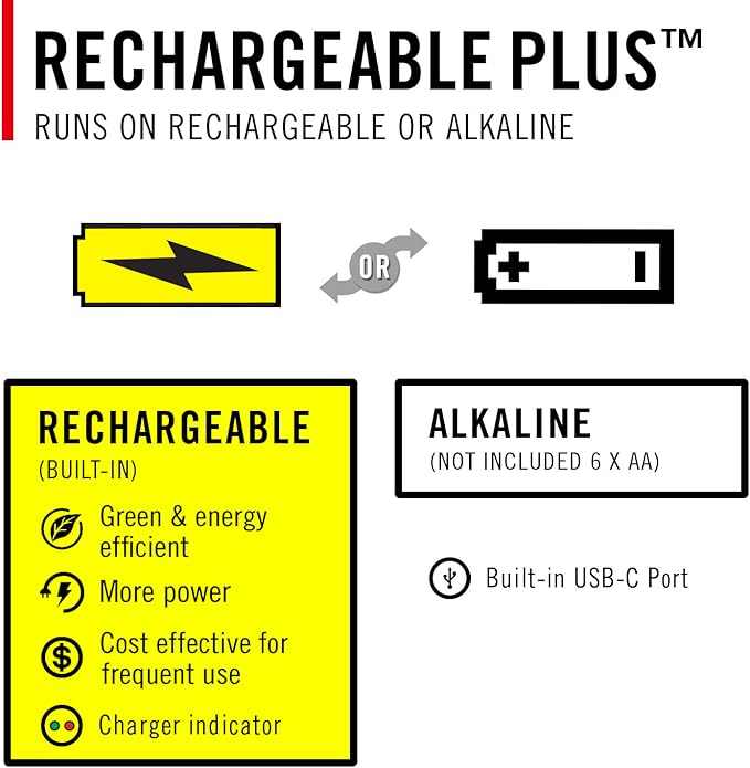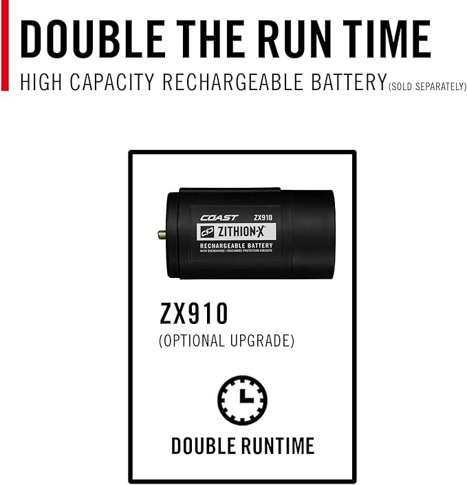 • RECHARGEABLE PLUS: Power your lantern how it suits you best—using the integrated COAST ZITHION rechargeable battery or 6 x AA alkaline batteries (purchased separately). Extend the runtime with a COAST ZITHION-X ZX915 rechargeable battery (purchased separately).