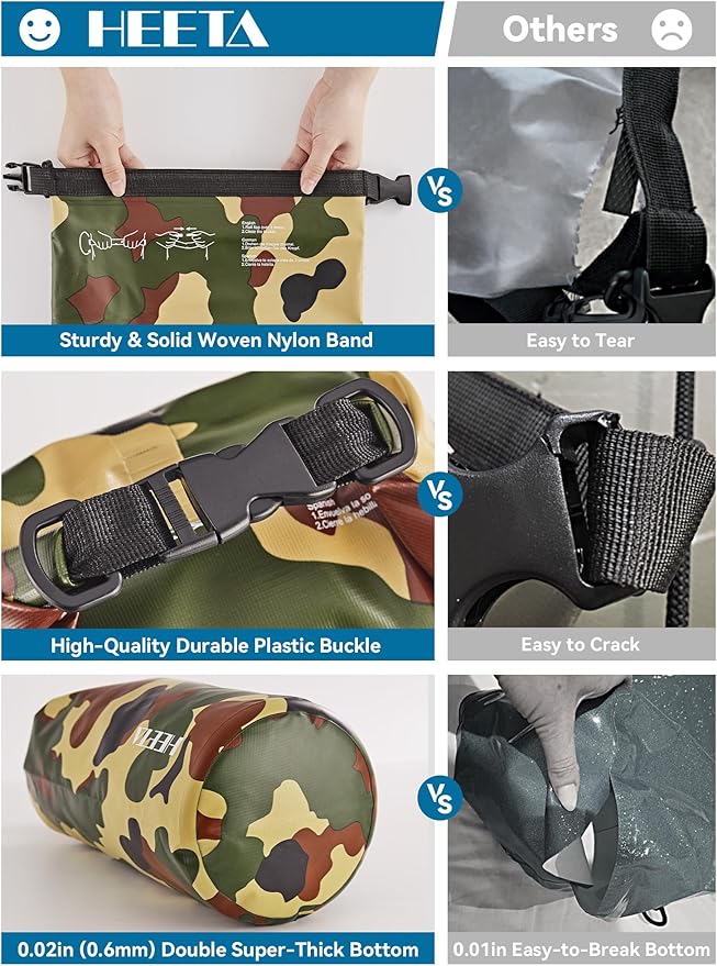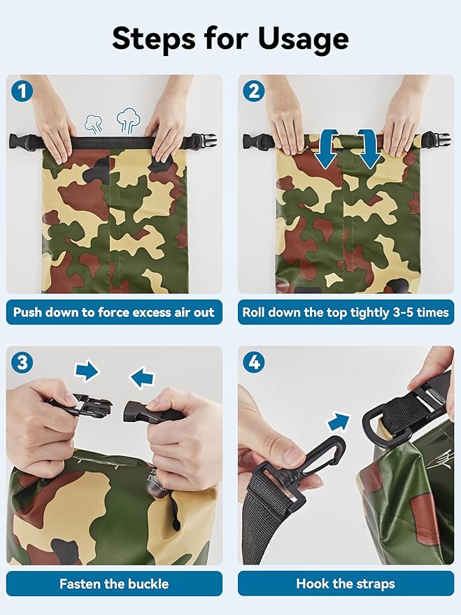 • Durable - Made of 0.02 in (0.5 mm) thick upgraded wear-resistant PVC material, it's suitable for all kinds of outdoor activities. Waterproof bag is well adapted to various weather and environment.
