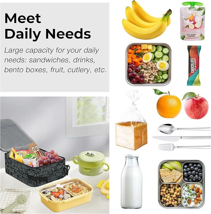 • Kids Insulated Lunch Bag: Made of expanded powerful EPE foam and PEVA safe film, can keep food warm and fresh longer than others; Suitable for going back to school, picnic, camping, travel, ect