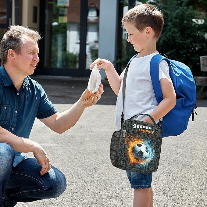 Clastyle 3D Insulated Kids Lunch Bag Large Thermal Cooler Bag for Boy Picnic School Lunch Box Tote,Fire Football