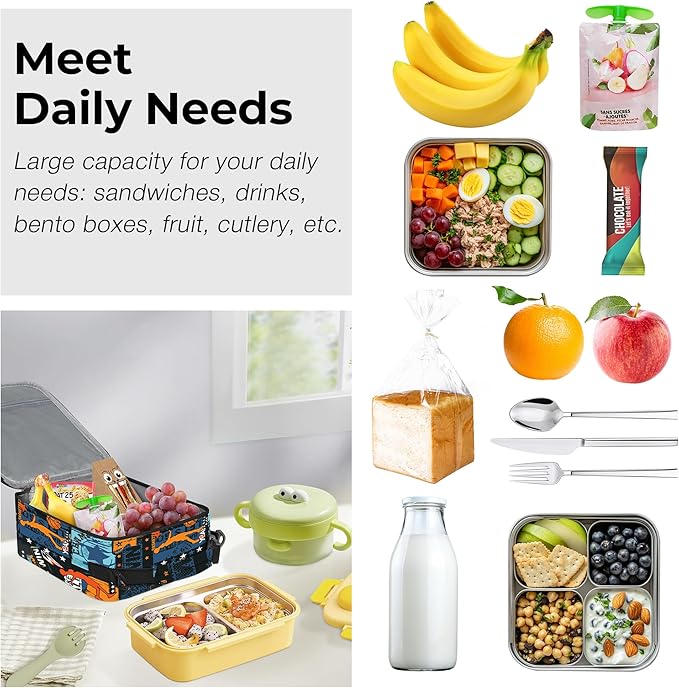 Clastyle Black Street Basketball Insulated Lunch Bag for Kids, Portable Large Thermal Cooler Lunch Bag for Boys, School Lunch Box Bag with Bottle Holder