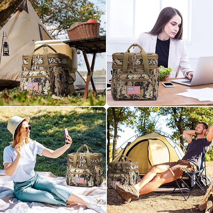 Maelstrom Tactical Lunch Box for Men, 23L Insulated Lunch Bag, Expandable Double Deck Cooler Bag, Lightweight Leakproof Tote Bag With Side Tissue Pocket, Suit For Men and Women, Camouflage