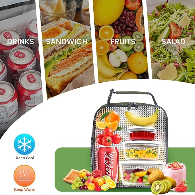 • 【Easy to Clean】This lunch bag is designed for easy cleaning. Simply wipe the surface with a damp cloth to remove any spills or stains, ensuring that it stays clean and ready to use. It ensures you can enjoy fresh food every day.