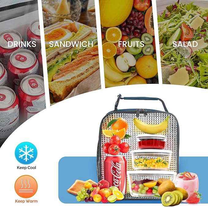 • 【Great insulation】 With a pearl cotton insulation layer and an aluminum film interior lining, lunch bags provide excellent insulation capabilities for both keeping your food warm and maintaining its coolness.