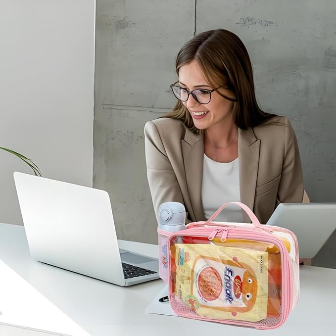 Insulated Lunch Box for School, Thermal Reusable Durable Freezable Lunch Bags for Kids Boys Girls Men Women - Small Soft Cooler Portable Lunch Tote Kit for Work Picnic Travel,Clear Pink