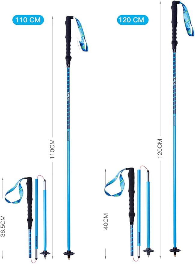 • 【Flodable for Easy Storage】These foldable walking sticks quickly fold up to 36.5cm, they are small and lightweight and can be stored in a backpack when not in use. Length 110cm/43", suitable for height 160-170cm/63"-67", length 120cm/47", suitable for height 170-180cm/67"-70.8".