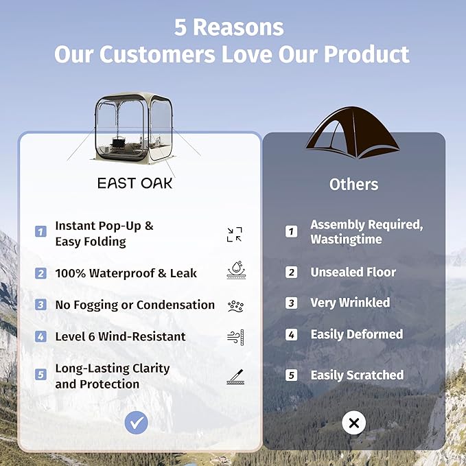 EAST OAK Clear Tent for Sport Events, Fishing & Outdoors | Pop Up Bubble Tent Instant Sun & Rain Shelter | No Condensation, Spacious Interior, Ultra Visibility | All Weather Protection | 2-3 Persons