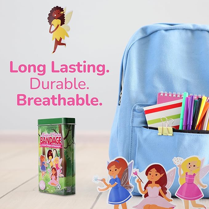 • EASY TO CARRY AND USE: These cute and colorful Magical Fairies children's bandages are easy to take with you for travel, and easy to store in a home first aid kit; these healing bandages are perfect for school, summer camp, camping trips, weekend getaways and more