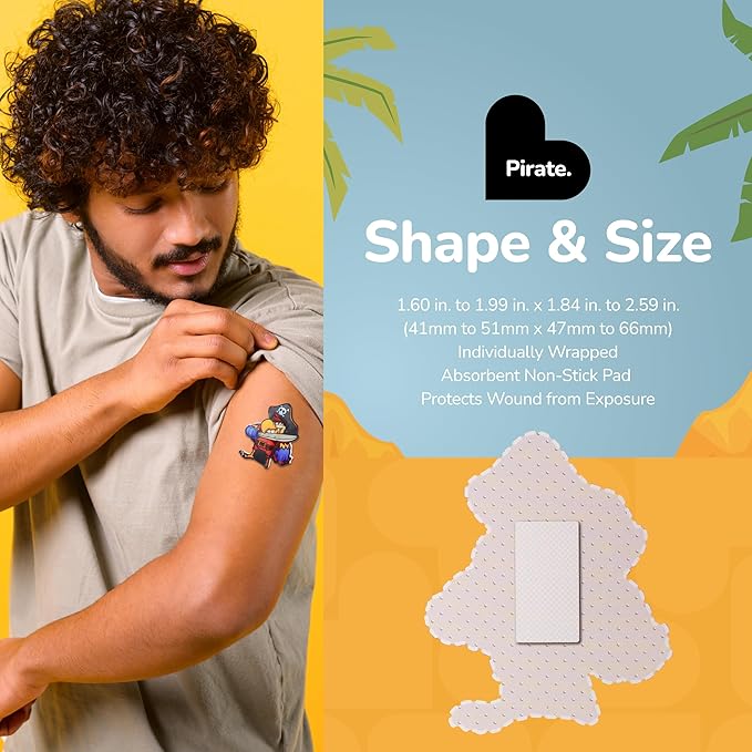 • EASY TO CARRY AND USE: These cute and colorful Pirate children's bandages are easy to take with you for travel, and easy to store in a home first aid kit; these healing bandages are perfect for school, summer camp, camping trips, weekend getaways and more