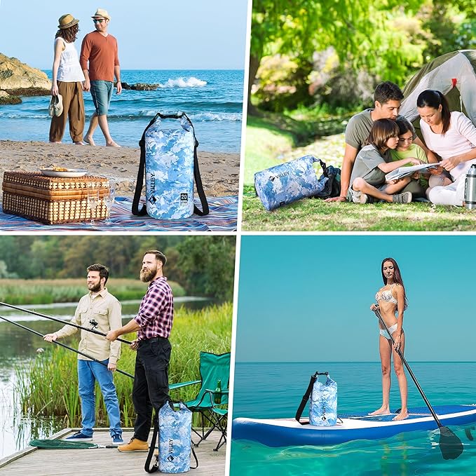 VILLEY Dry Bag Waterproof 5L Roll Top Sack Keeps Gear Dry Lightweight Dry Sack for Kayaking Boating Camping Swimming and Beach Adventures Blue Camo