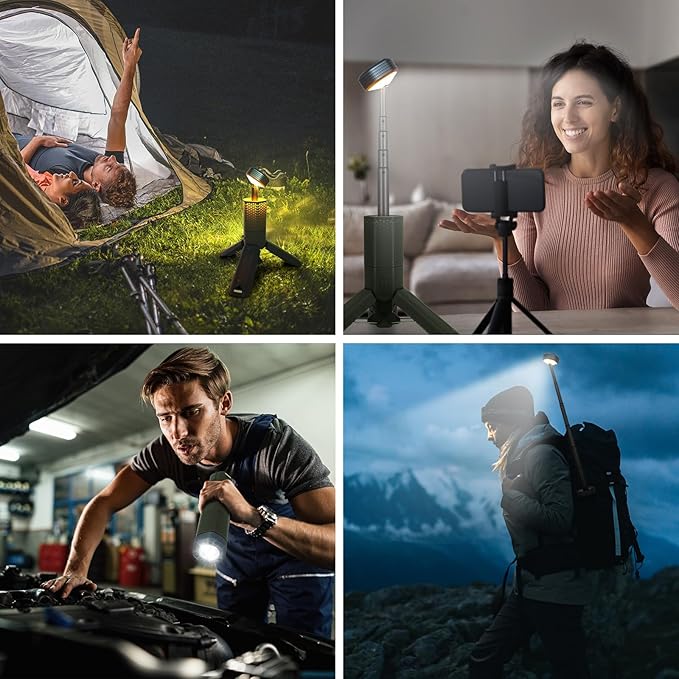 • Telescopic & Storage Bag: the collapsible design is a highlight of our camping lights and comes with a storage bag for easy carrying and use.You can adjust the telescopic state of the outdoor camping light according to your use needs.In addition, the base of the camping lamp also has a magnetic function,which can be easily adsorbed on the iron metal surface for your convenience