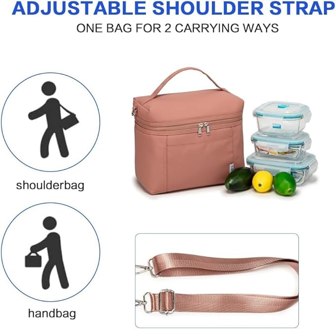 • Portable and cute design: this lunch bag is made of waterproof nylon outside, it’s lightweight and tear resistant; With two ways of carrying- top handle and cross-body by a detachable and adjustable long shoulder strap.