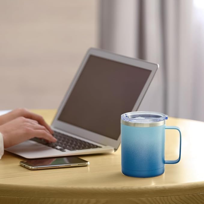 MEWAY 12oz Coffee Mug With Handle 2 Pack Bulk,Stainless Steel Insulated Travel Tumblers With Sliding Lid,Double Wall Vacuum Camping Cup for Hot & Cold Drinks Tea (Bubble Gum&Blue Waves,Set of 2)