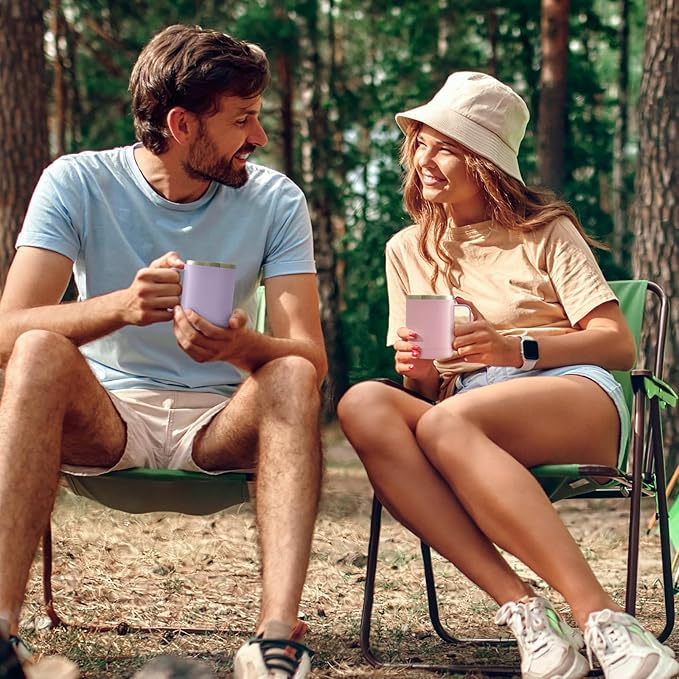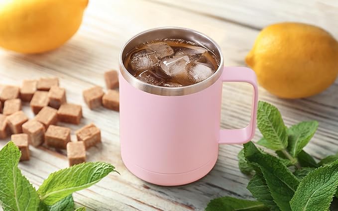MEWAY 12oz Coffee Mug With Handle and Sliding Lid,Stainless Steel Travel Tumbler Cup with Handle,Double Wall Vacuum Insulated Camping Cup for Hot & Cold Drinks Tea (Pink,Set of 1)