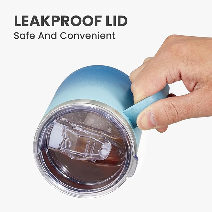 MEWAY 12oz Coffee Mug With Handle and Sliding Lid,Stainless Steel Travel Tumbler Cup with Handle,Double Wall Vacuum Insulated Camping Cup for Hot & Cold Drinks Tea (Blue Waves,Set of 1)