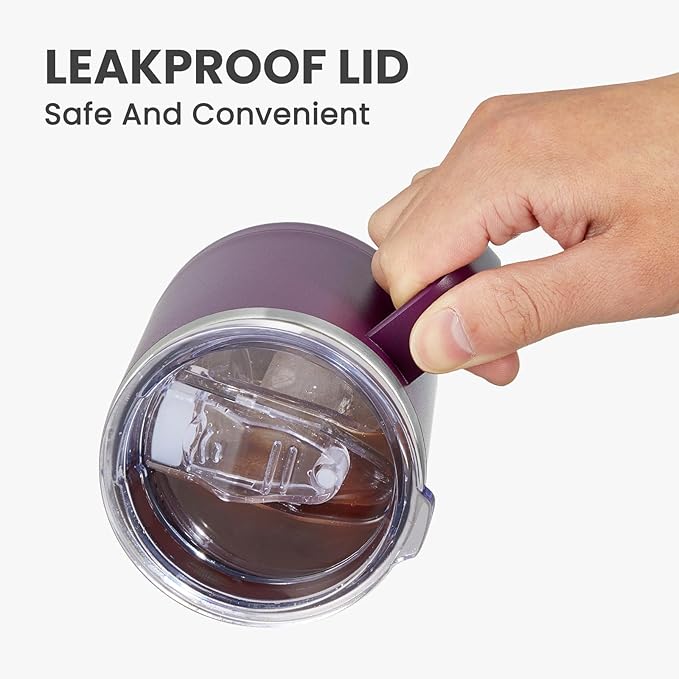 MEWAY 12oz Coffee Mug With Handle and Sliding Lid,Stainless Steel Travel Tumbler Cup with Handle,Double Wall Vacuum Insulated Camping Cup for Hot & Cold Drinks Tea (Plum,Set of 1)