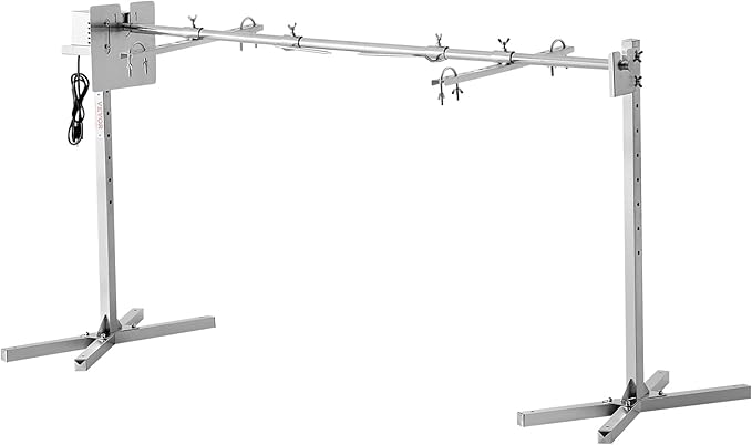 VEVOR 56-Inch Splicable Rotisserie Grill Kit, 132 lbs Sectional Spit Rod with Automatic 52W Motor & Heat Shield, Height Adjustable Spit Roaster Stand for Roasting Pig Lamb, Stainless Steel Grill