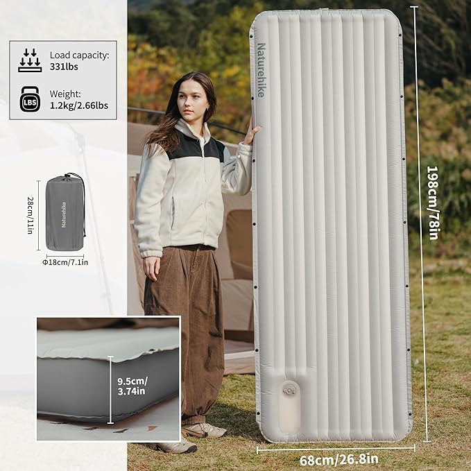 • WIDE RANGE OF APPLICATION SCENARIOS: Suitable for hiking, camping, home, car travel, hunting, beach and other scenes use. If you have any questions you can always contact Naturehike, we will respond to you within 12 hours. We also recommend that you use this air mattress with a Naturehike sleeping bag or tent, which can provide you with better warmth