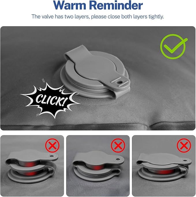 • Easy Inflation with Foot Pump -- Effortlessly inflate the camping pad by stepping on the built-in foot pump. Dual-layer air valves ensure rapid inflation and prevent air leakage, making it ideal camping gear for camping or any outdoor activity.