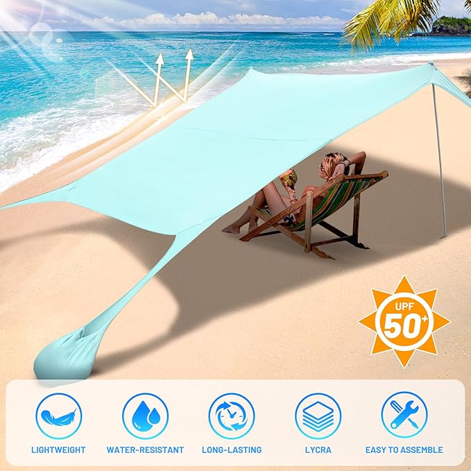 • 【Advanced Sun Protection】 Designed with the highest quality Lycra fabric and offering UPF 50+ sun coverage and water-resistant function, lightweight beach canopy tent sun shade can shade your outdoor beach holiday. Family beach tent durable materials are not afraid of stretching and tearing