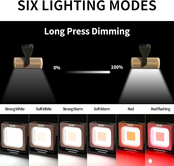 • 【🔦 6 Modes】4 color temperatures, red and red flashing for emergency warming signal.