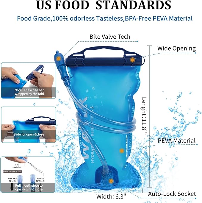 • 【Hydration and Storage Made Easy】 Equipped with a main compartment that holds a 1.5L water reservoir and front pockets designed for 700ml soft water bottles, this hydration pack ensures you stay hydrated during long runs or hikes. With additional room for snacks, phones, and other essentials, it doubles as a reliable running backpack or hydration backpack.