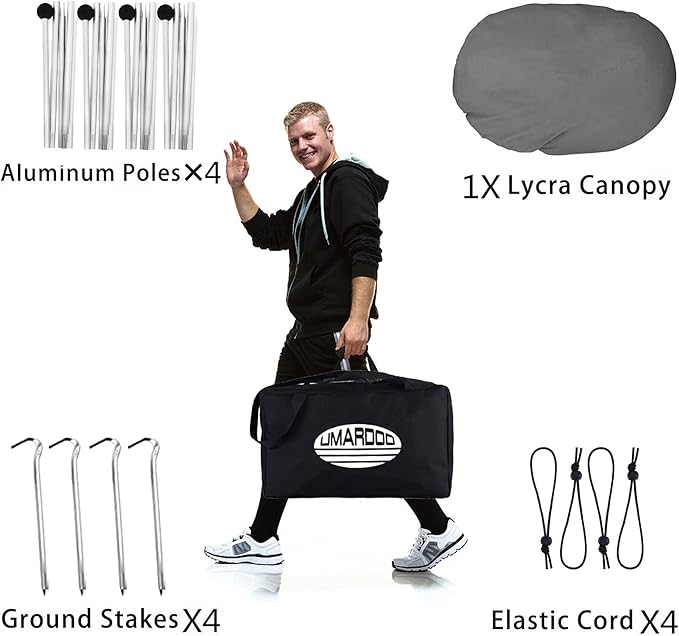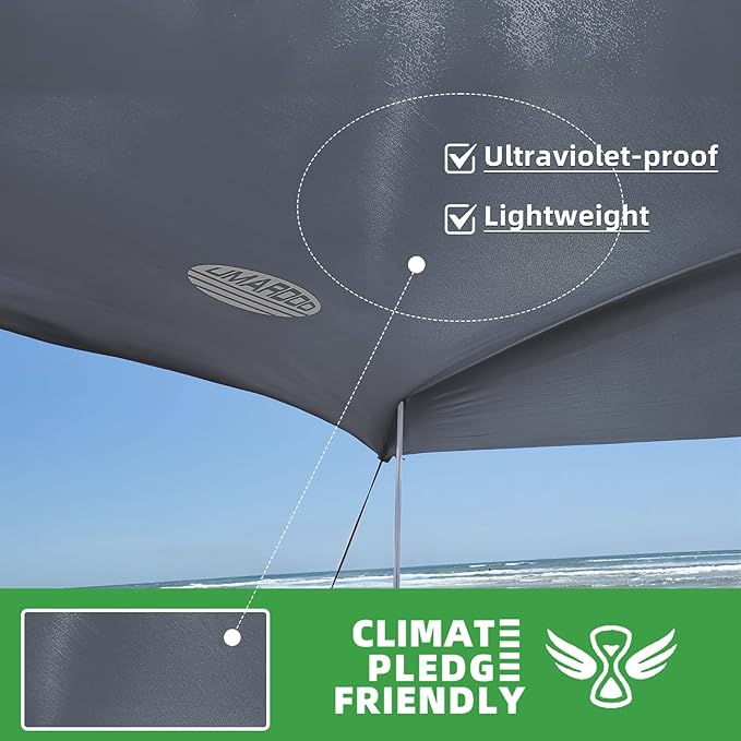 • DURABLE BEACH SHADE CANOPY: The strong and elastic Lycra fabric has UPF 50+ protection and water-resistant function. Rust-proof aluminum poles are attached with a elastic cord preventing moving.