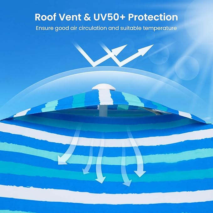 • 【Enhanced Stability & Ventilation】Beach cabana umbrella has air vents on top,Inot only keeps the air flowing but also helps the balance of the beach umbrella.Privacy Sidewall is removable, you can choose whether to install it according to your needs.