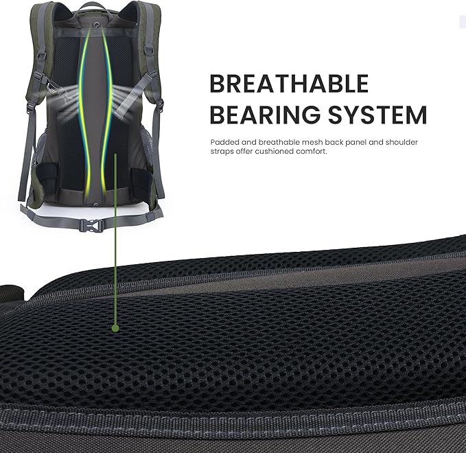 • Comfortable and Breathable: This travel backpack uses breathable mesh padding and a ventilated back system to keep your items dry and ventilate your back. The ergonomically designed structure helps to evenly distribute the weight, making it comfortable to carry while hiking.