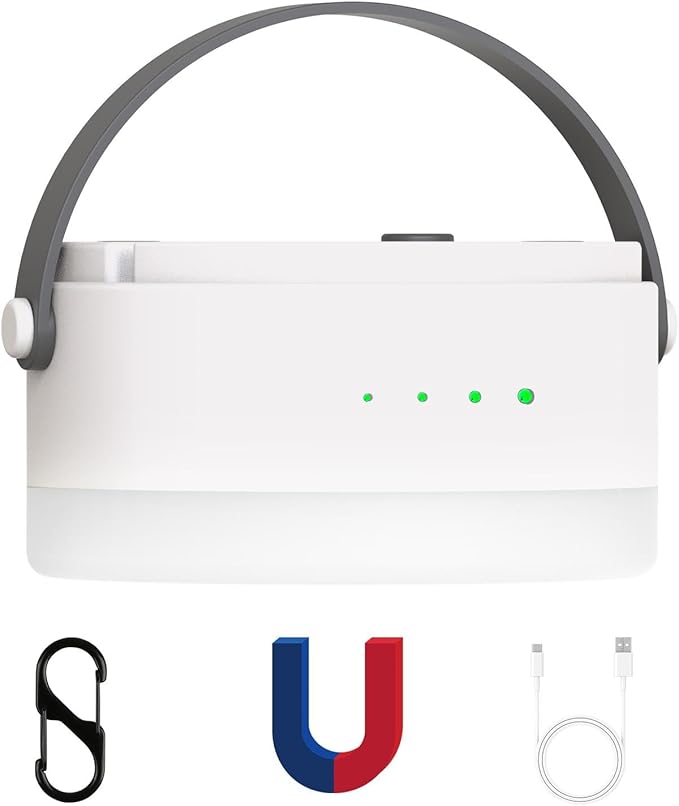Led Rechargeable Camping Lantern with Tent Light & Portable Lamp - USB-C Magnetic Base, Stepless Dimmable, 2000mAh Battery, Hanging Design, Power Indicator, Compact & Lightweight