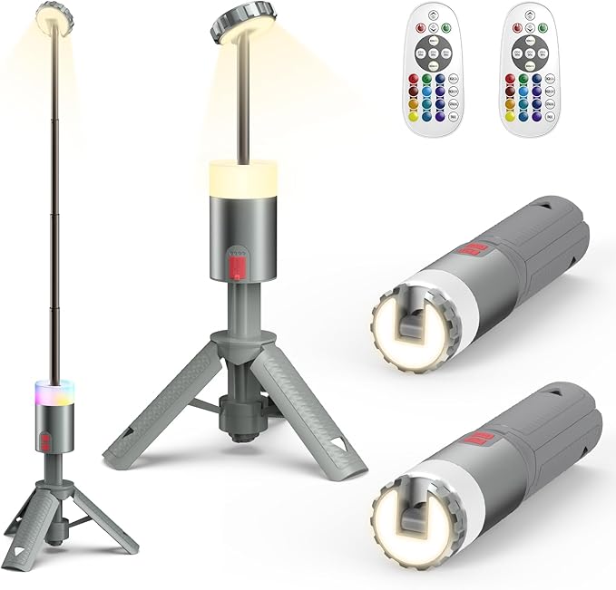 • Multi-functional Lighting Control: The rechargeable camping light provides manual adjustment and remote control functions, making it easy to operate the switch, color, brightness, and function of the camping light. With the remote control, you can easily turn on/off the lights, adjust the brightness (20 levels of 3 color temperature brightness, 10 levels of RGB brightness), change 15 colors (12 RGB colors and 3 color temperatures), and even set a 30/60 minute timer