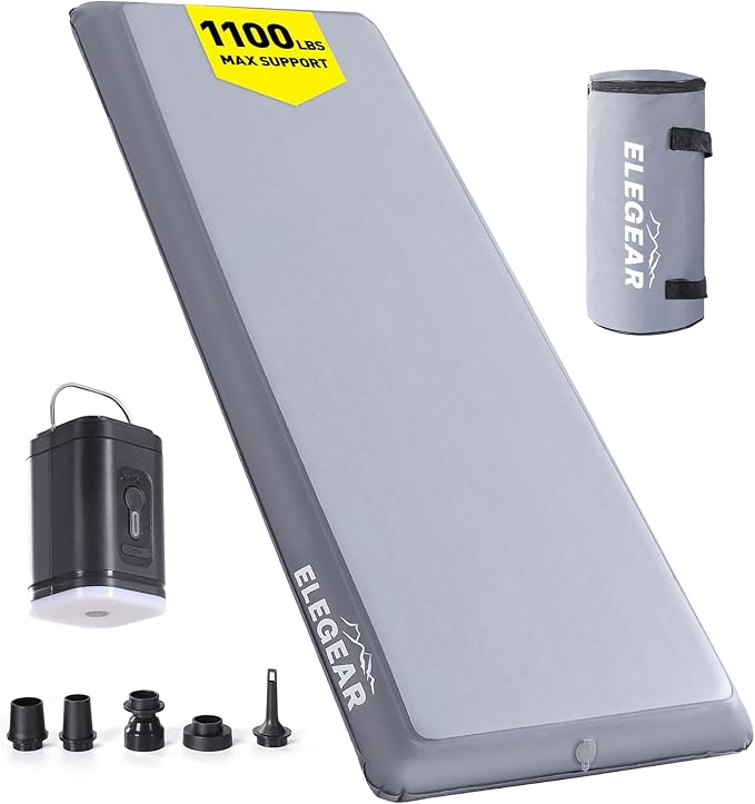 • 【Easy to Carry and Use】- Portability meets convenience with the Elegear camping mattress. It comes with an external rechargeable electric pump for quick and effortless inflation and deflation. Once deflated, it rolls up into a compact size, saving valuable space in your backpack or car. Whether you’re camping, backpacking, or on a road trip, this camping mat is designed to make your outdoor experience hassle-free. Its lightweight and portable design make it a must-have for adventurers and families alike.