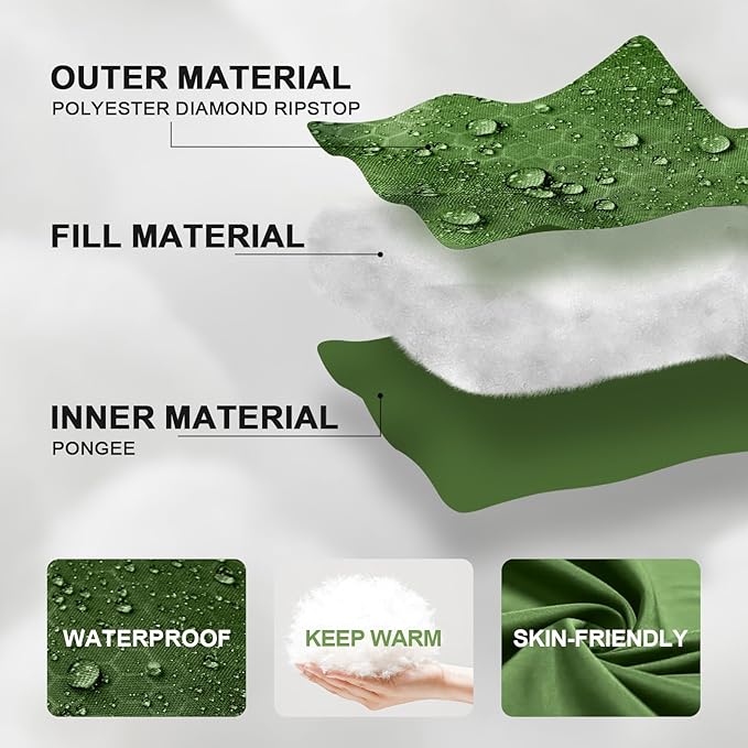 • 【SUITABLE FOR 3-4 SEASONS】Rated for 50°F-70°F with 30°F limit, this ultralight sleeping bag adapts to spring, summer, fall, and cool weather,or as an emergency blanket during winter vehicle breakdowns. High-quality and durable polyester ripstop fabric, stands up to years of use