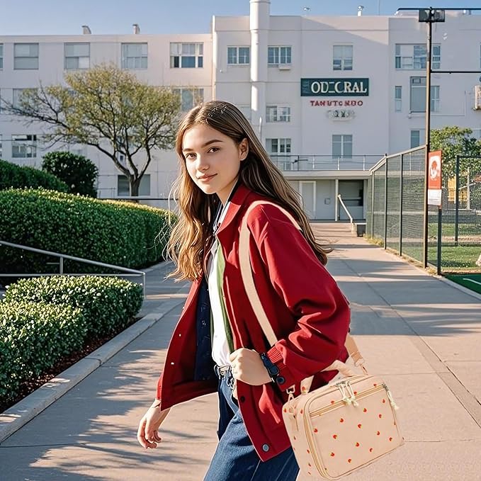 • It's super adorable and very classy with cute strawberry pattern,The bag is leak-proof and friendly to carry on.Your kids will love to bring his/her lunch box to school everyday!