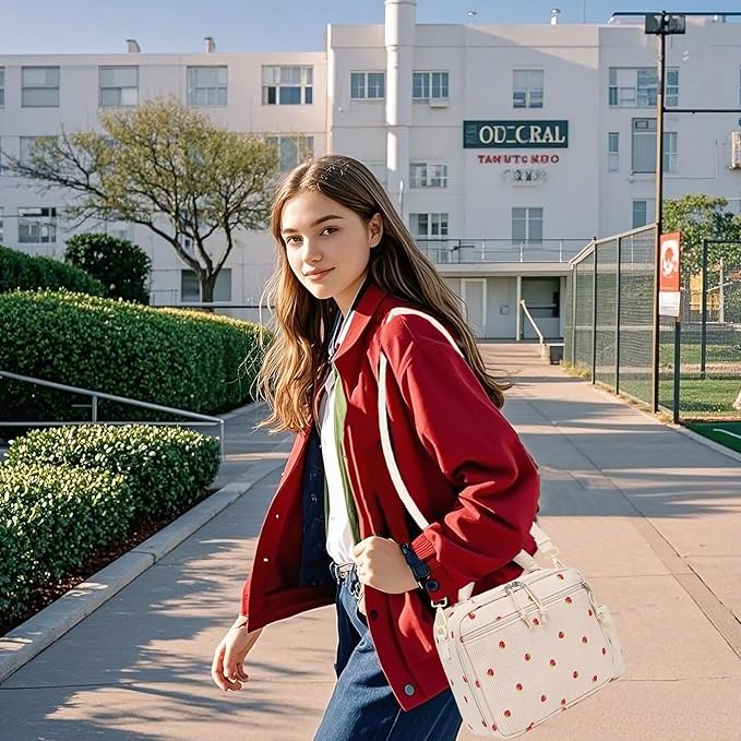 • It's super adorable and very classy with cute strawberry pattern,The bag is leak-proof and friendly to carry on.Your kids will love to bring his/her lunch box to school everyday!
