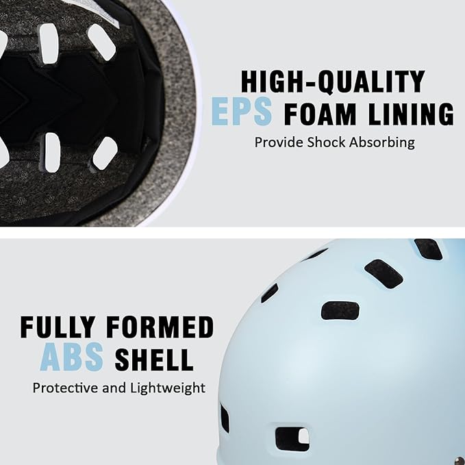 • The kids bicycle helmet is made of rugged ABS shell and shock-absorbing EPS foam to provide comprehensive protection.