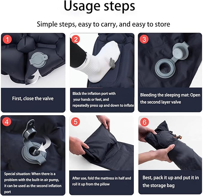 • Quick & Easy Inflation.Inflates in minutes with a simple foot pump or hand press – no extra tools required. Deflates just as fast for hassle-free packing.