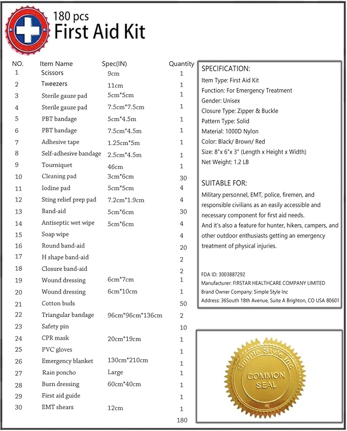 • INCLUDED: 180 piece essential medical supplies for backcountry expeditions. Be Desmond Thomas Doss saving your family and friends in an emergency
