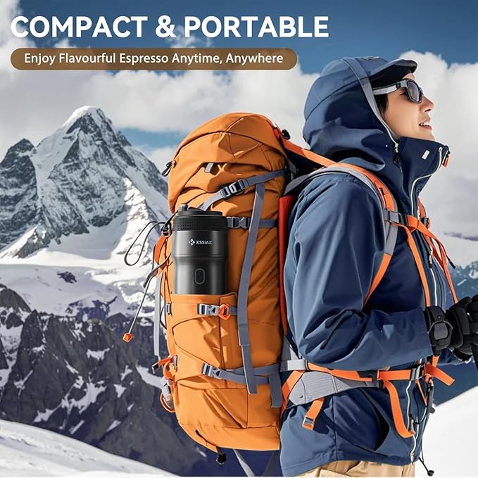 • 【Portable Design】With a compact design, the electric espresso maker weighs 2.4 lbs and is only the size of a water bottle. It is portable and perfect for camping, travelling and hiking. This coffee maker is compatible with 12V car charging, so you can charge it wherever you go