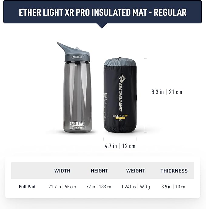 Sea to Summit Ether Light XR Pro Insulated Sleeping Pad, Tapered - Regular (72 x 21.5 x 4 inches)