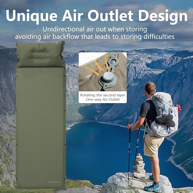 BISINNA Self-Inflating Sleeping Pad Thick Foam Sleeping Mattress with Pillow for Camping Lightweight Insulated Sleeping Mat Fast Inflating for Camping Travel Car Tent