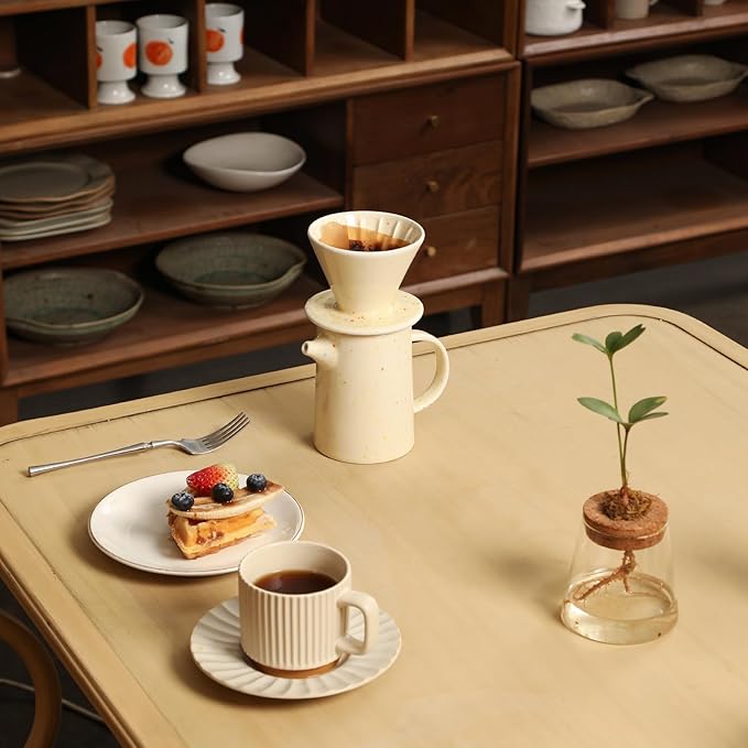 • Easy to Use and Clean:Our ceramic pour over coffee dripper set lets you have a traditional, hands-on brewing experience,you can have a cup or two of coffee whenever and wherever you want.Ceramic material is easy to clean, just rinse with water after use.Microwave, oven, dishwasher safe.