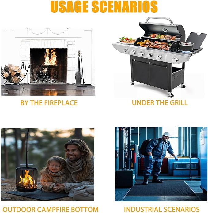 • 【MULTI-SCENARIO PROTECTION】Ideal as: * Fire pit mats for under fire pit * Grill mats for outdoor grill * Wood stove mats fireproof. Protects grass, wood & composite surfaces
