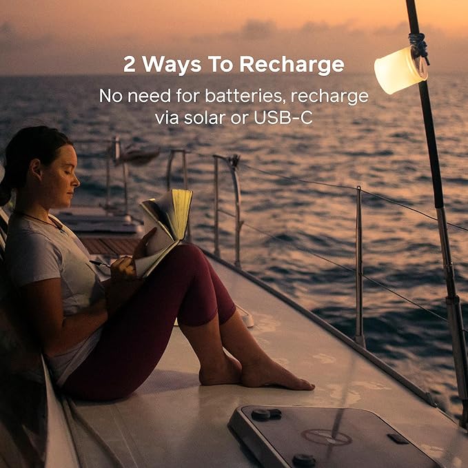 • Built-in rechargeable 1,000 mAh lithium-ion battery provides up to 24 hours of reliable light per charge; recharges via solar or USB-C for flexible power options