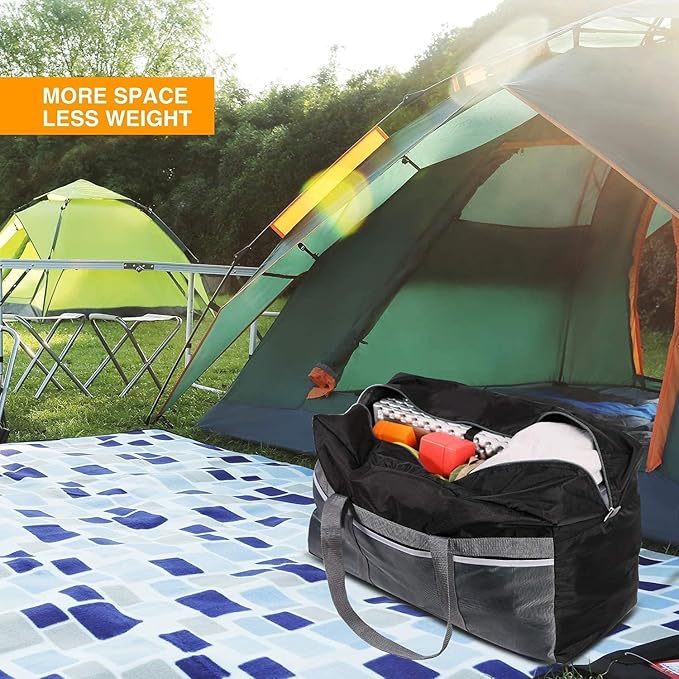 • Large Capacity and Lightweight: Up to 96L with dimensions of 80x30x40cm/31x12x16 inches (L x W x H); It can be folded into a compact carry pouch of 20x23 cm/ 8x9 inches ( L x W ). Weighs only 0.70 lbs.And 60lbs weight capacity.