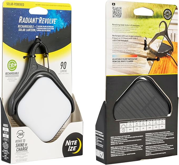 Nite Ize Radiant Revolve Rechargeable & Solar Lantern - Premium Solar Light for Camping Accessories & Backpacking Gear - Weather-Resistant Design with 360-Degree Rotating Body