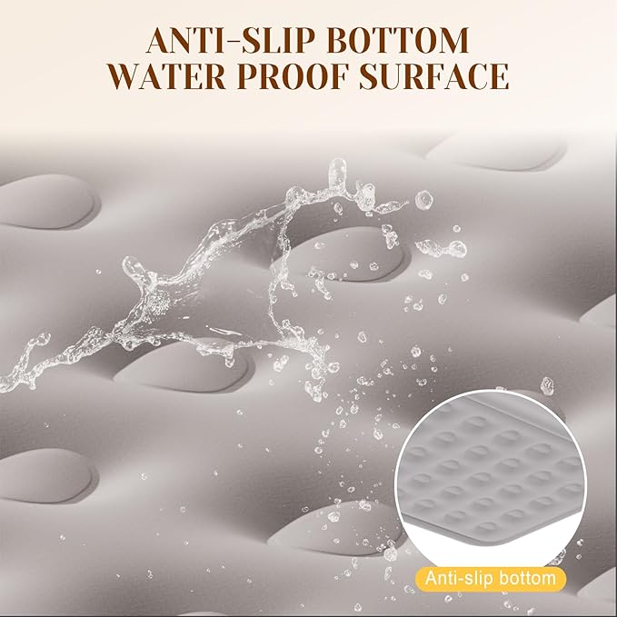 • SAFETY EDGE HEIGHTENED DESIGN: Heightened safety edges provide more sleeping space and protect items from falling.The anti-slip bottom ensures the air mattress remains in place, keeping the bed stable even on wooden or tile floors for a secure and comfortable sleeping experience.