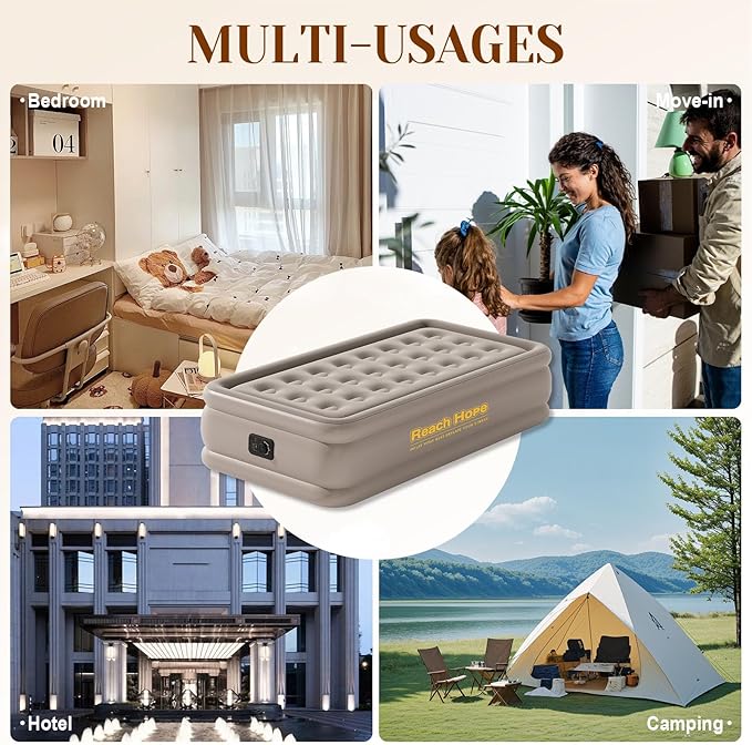 • MULTI-USE: Ideal for campers and outdoor enthusiasts, our Reach Hope camping air mattress offers a comfortable sleeping surface for camping and outdoor adventures. It’s also great for travelers in hotels. Whether you need an extra bed or a better on - the - go sleeping option, this mattress has you covered.