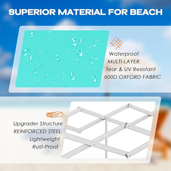 • Quick Setup, Lasting Memories: Transition seamlessly from car trunk to beach fun with our user-friendly, rapid folding mechanism, ensuring quick setup and compact storage. Spend less time wrestling with equipment and more time creating cherished moments during beach trips, park outings, camping adventures, and beyond with your loved ones